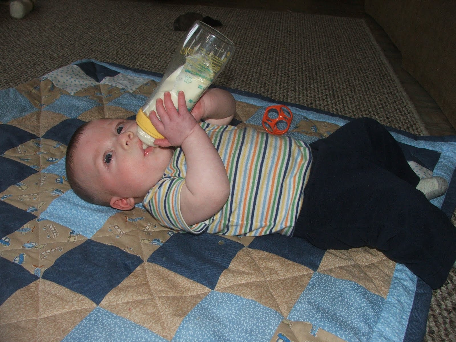 He also is starting to hold his own bottle which is so cute to see him do especially when he falls asleep with his little hands on it!